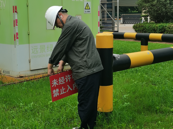 江阴风电运维项目部由于设备多而且分散,且设备区域人员密集,生产区域存在安全隐患。因此项目部安排人员及时统计损坏、褪色标示牌的数量、尺寸,上报定做统一铝塑标示牌,对生产区域设备标识牌进行细致排查,并及时对陈旧、破损的标识牌更换。