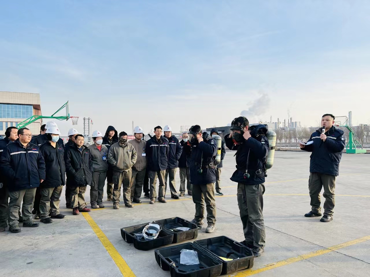 演练结束后,张工对所有参演人员培训了“正压式空气呼吸器的检查及使用方法”,开展了全面而又具有价值的一堂课。